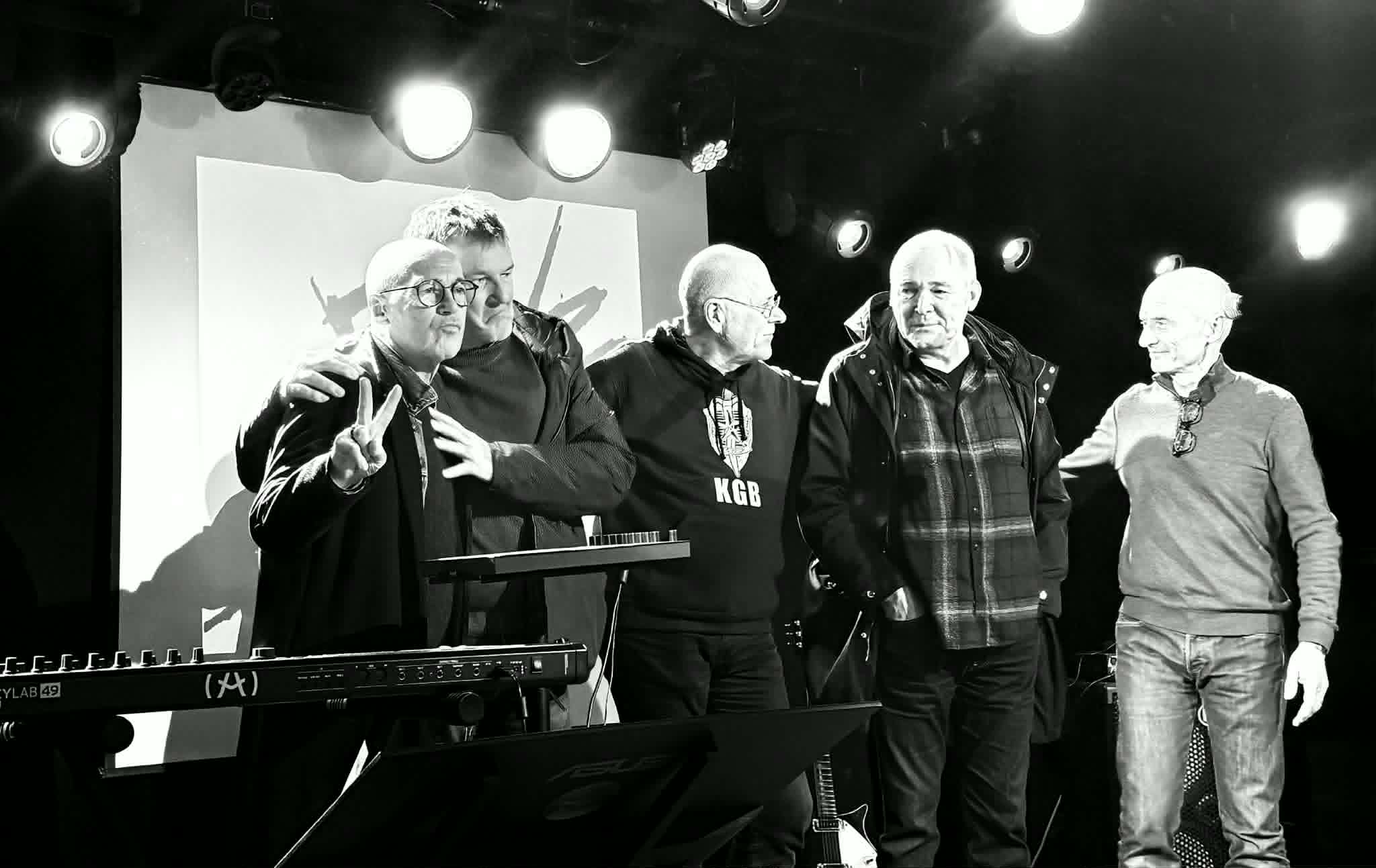 Philippe Gonin, auteur du livre 𝗠𝗮𝗿𝗾𝘂𝗶𝘀 𝗱𝗲 𝗦𝗮𝗱𝗲 - 𝟭𝟵𝟳𝟳-𝟮𝟬𝟭𝟵, lancera les “hostilités” avec une conférence autour d’une K7 de démos que Frank Darcel a confiée à Sergeï Papail pour qu’il y pose ses lignes de basses. Rendez-vous est donné au drugstore de Rennes pour en discuter. Ce soir nous entendrons la bande-son des premiers riffs de « Skin Disease » et la voix du jeune Frank Darcel. Frissons. Il sera même question d’une suite d’accords d’une chanson perdue. Une sorte de cold case musical. Les autres membres du groupe seront interrogés à ce sujet avant de faire une photo souvenir sur scène: Christian Dargelos, Éric Moriniere, Thierry Alexandre, Sergeï Papail, Pierre Thomas.