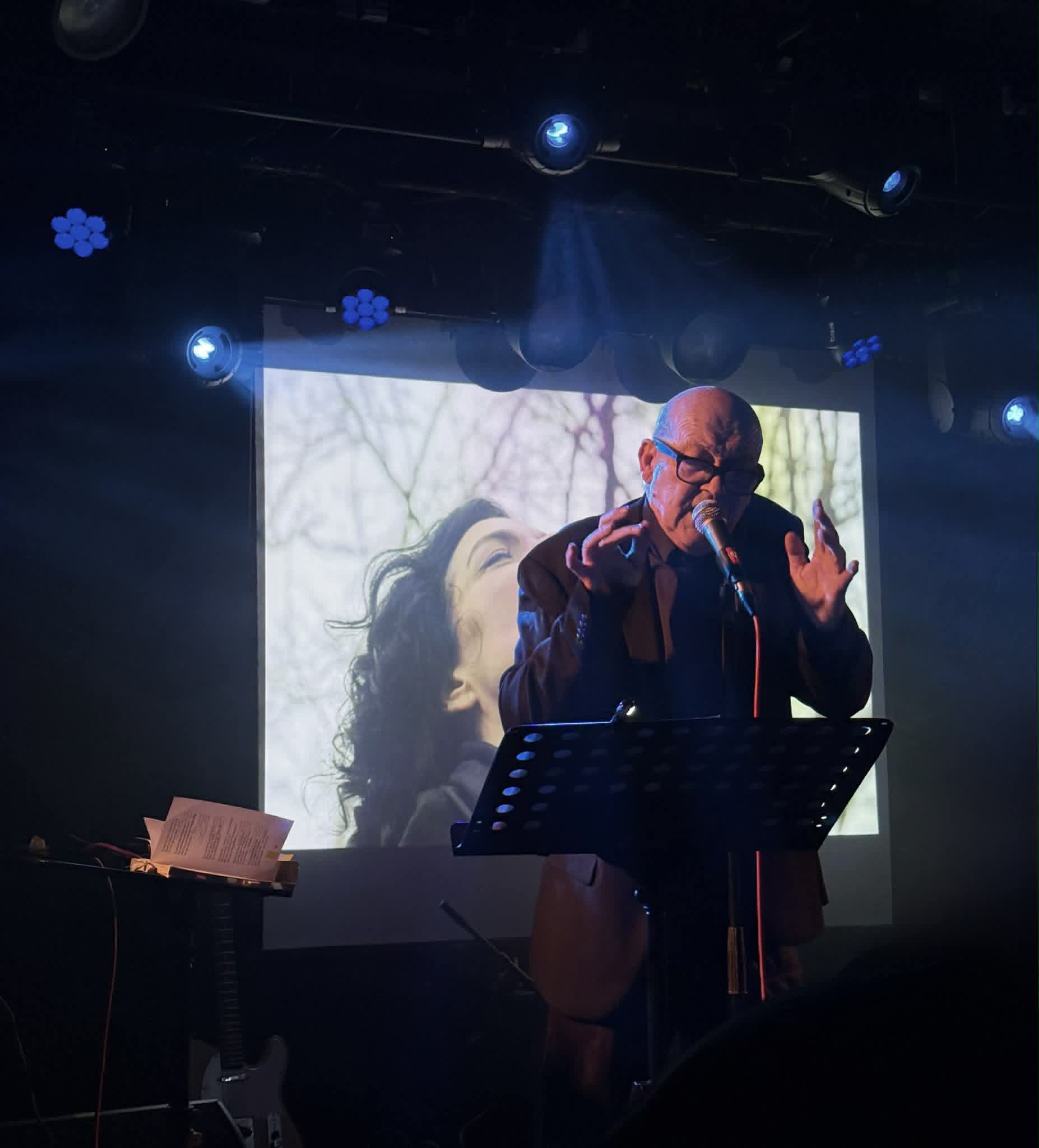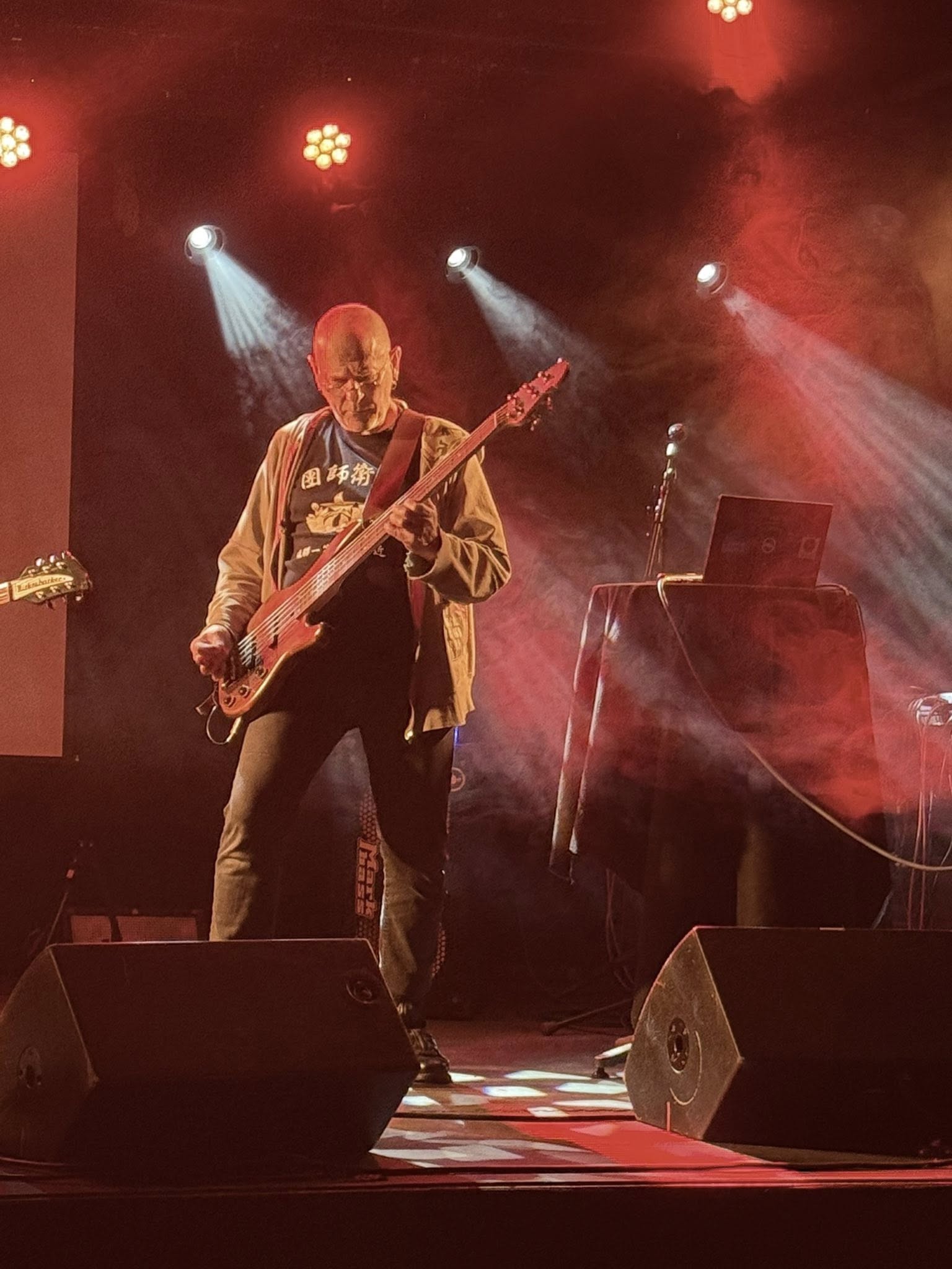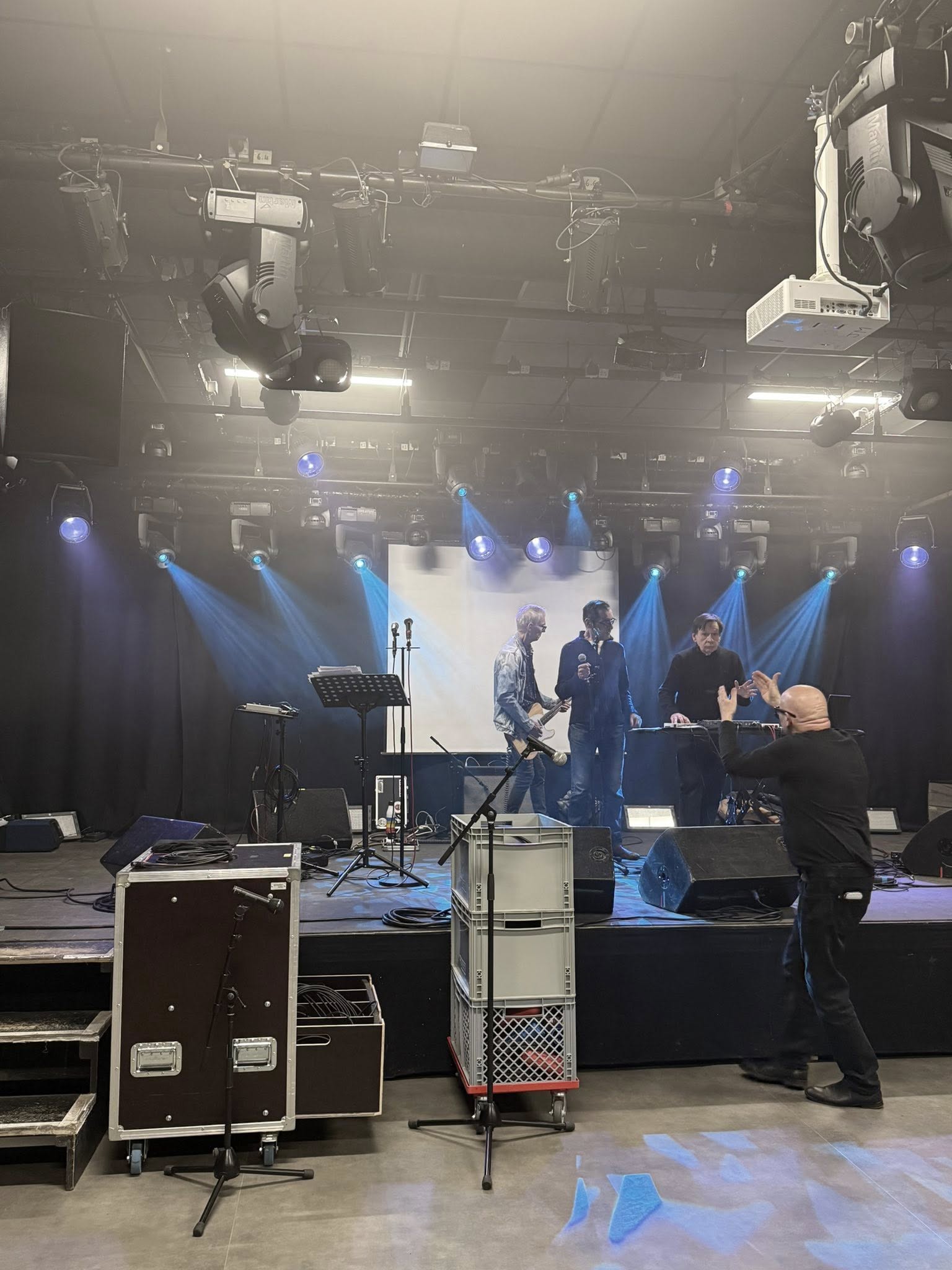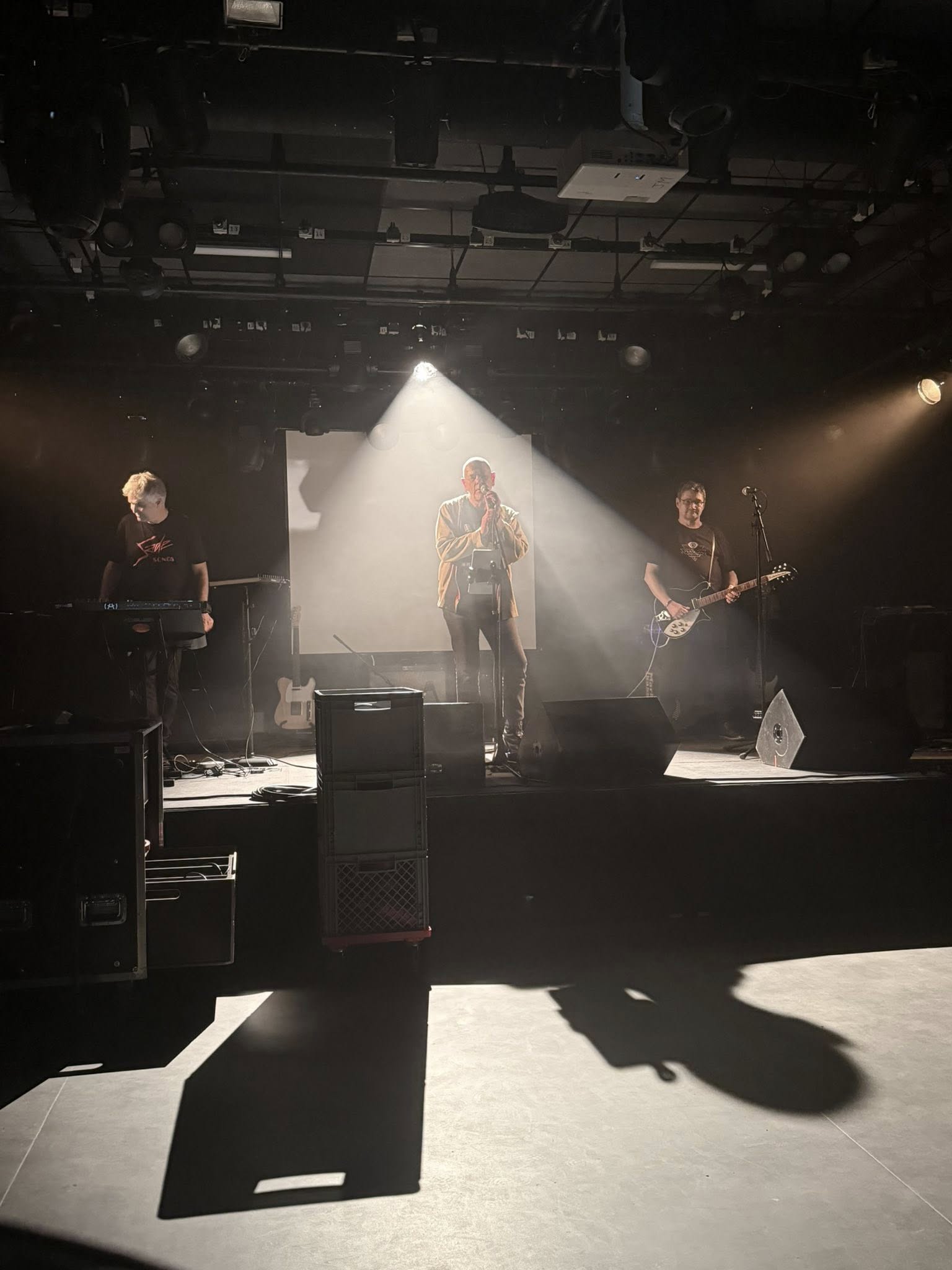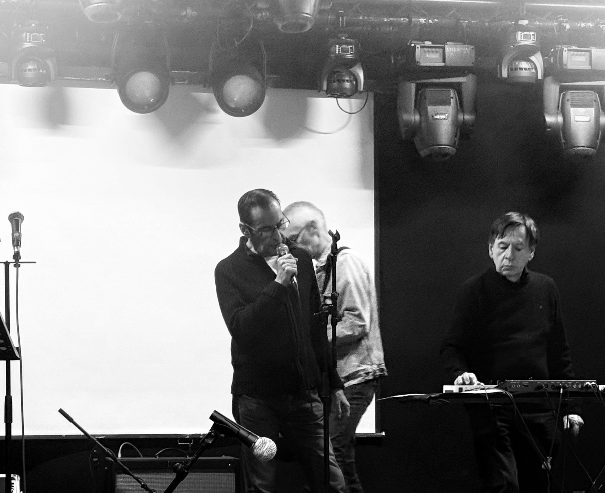 Les titres évoqués au cours de la conférence seront repris par le trio, avec une fin électrisée. Plus un, “Schuldik”. Conçu et chanté par Sergeï comme la suite de Conrad Veidt. Désirée par 𝗣𝗵𝗶𝗹𝗶𝗽𝗽𝗲 𝗣𝗮𝘀𝗰𝗮𝗹. A la fin du soundcheck il prend le temps de revenir sur la mise en œuvre de cette chanson. Il m’explique tout sur la participation qui s’imposait de 𝗦𝗮𝗺𝘆 𝗕𝗶𝗿𝗻𝗮𝗰𝗵, le chanteur de 𝗠𝗶𝗻𝗶𝗺𝗮𝗹 𝗖𝗼𝗺𝗽𝗮𝗰𝘁. Quand il interprètera ce titre devant le public ce soir, un frisson traversera la foule. En filigrane l’ombre planante de Philippe Pascal et Frank Darcel. La voix de Sergeï Papail nous emportera au travers de cette chanson-prière dans un espace hors temps. Nous sentirons l’âme des disparus comme revenir à la vie. Dans une joyeuse transe.