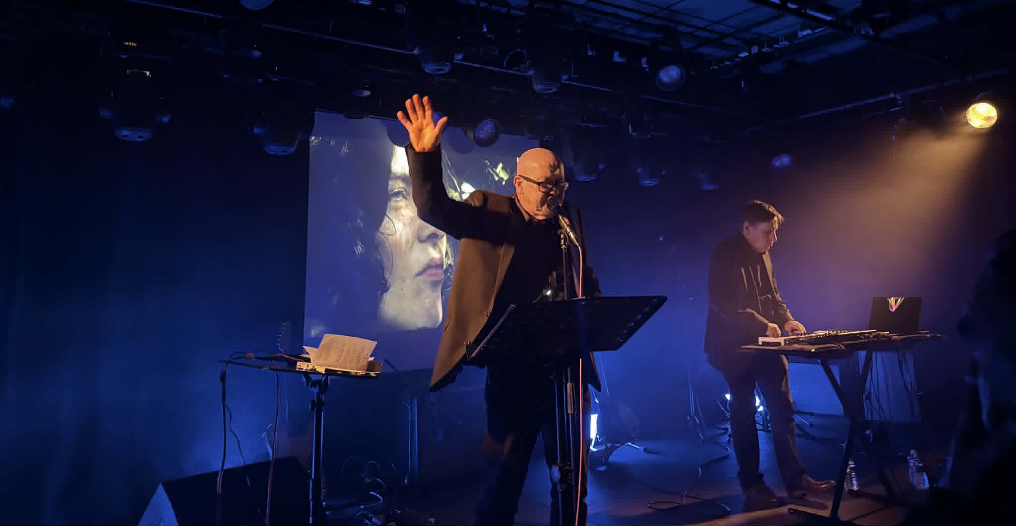 Le duo des Complots, François Possémé et Boris Guffer, ceux-là mêmes qui ont fondé Complot Bronswick, sont en plein soundcheck. Boris penché sur ses machines, François devant son pupitre, agitant les bras tel un chef d’orchestre. Ils s’apprêtent à poser sur plateau de nappes vaporeuses les mots de la poétesse 𝗘𝗺𝗶𝗹𝘆 𝗗𝗶𝗰𝗸𝗶𝗻𝘀𝗼𝗻. Ils vont nous emporter avec leurs mélodies ciselées. Et mettre leur talent au service de trois légendes locales. Le fameux 𝗥𝗶𝗰𝗵𝗮𝗿𝗱 𝗗𝘂𝗺𝗮𝘀 déjà évoqué, mais aussi Patrick Chevalier et Pascal Karels.
